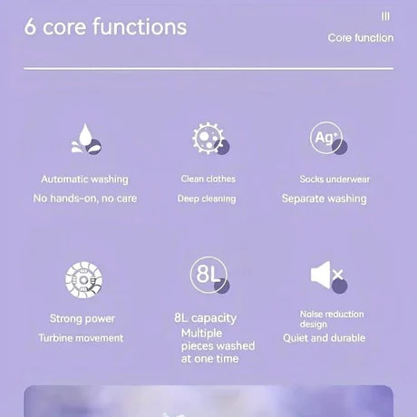 Fully Automatic Portable Small Washing Machine Underwear Underwear Breast Socks Washing Machine Baby Clothes Washing Machine 8L Large Capacity.
